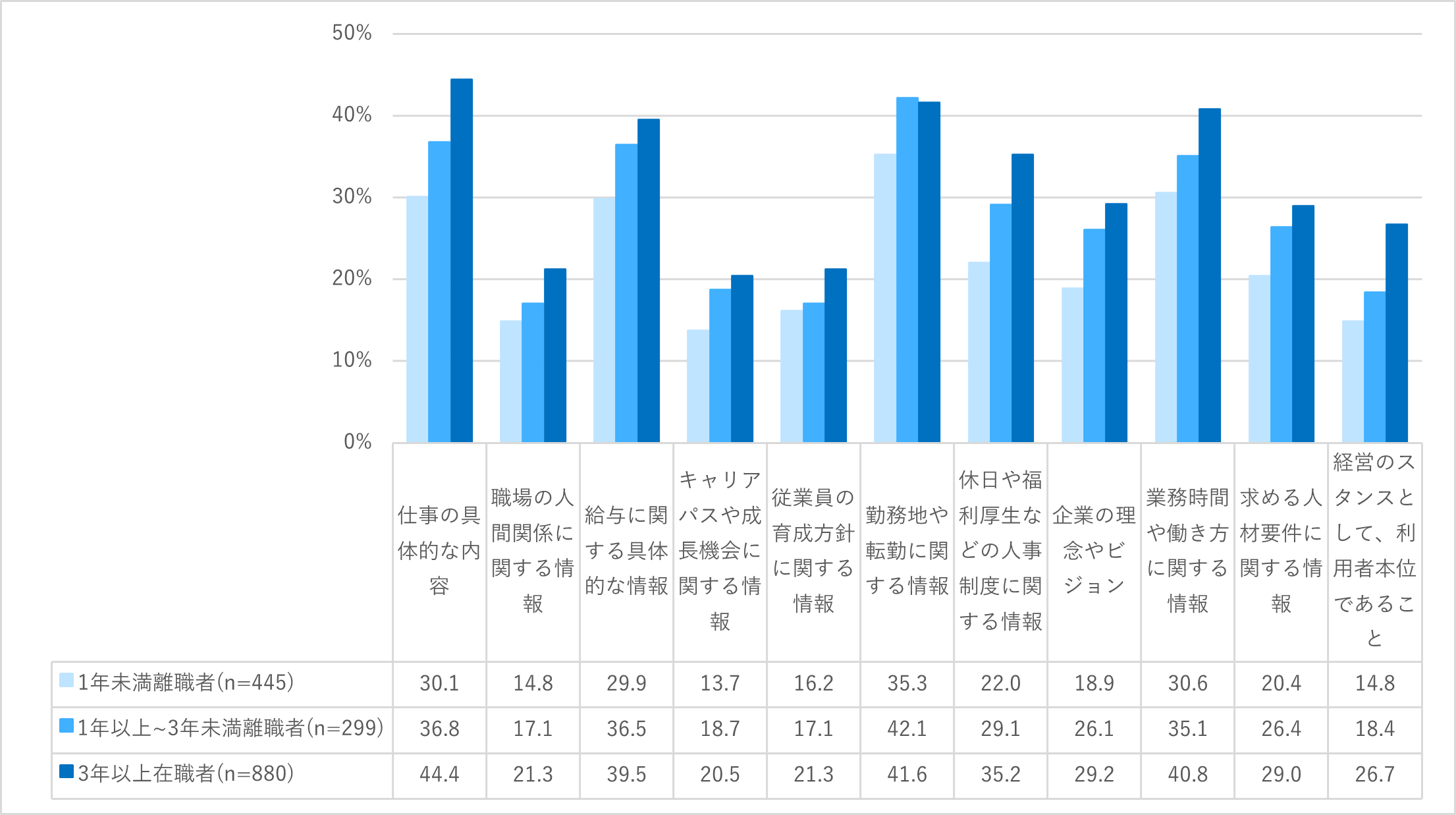 特に、求人票や面接で具体的な業務内容・人事制度・職場の雰囲気などを十分に伝えることで、入社後のギャップを減らし、ミスマッチによる離職を防ぐ効果が期待できると考えられる。